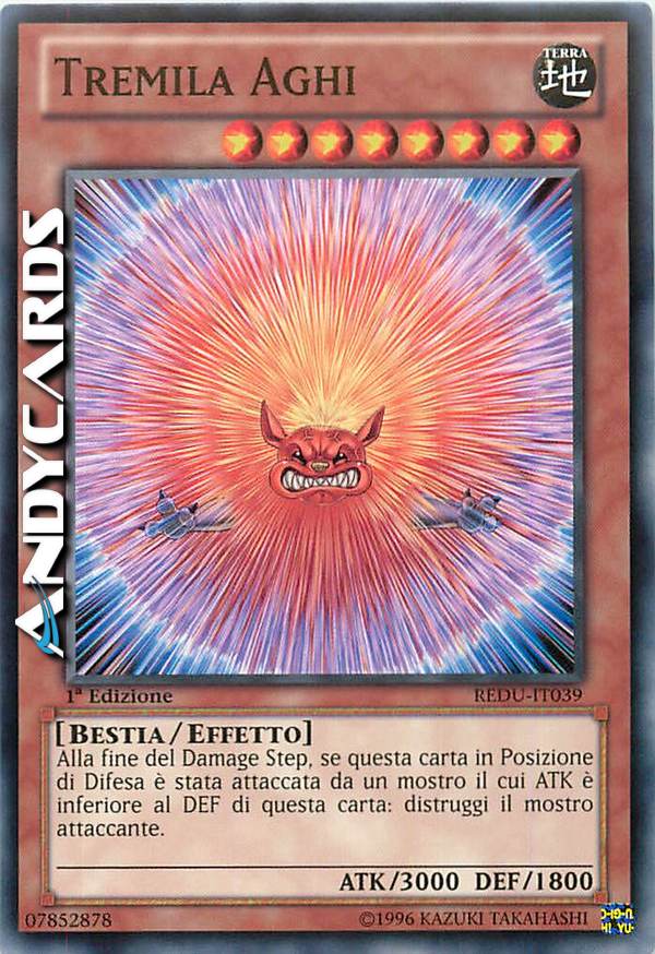 Alla fine del Damage Step, se questa carta in Posizione di Difesa è stata attaccata da un mostro il cui ATK è inferiore al DEF di questa carta: distruggi il mostro attaccante.