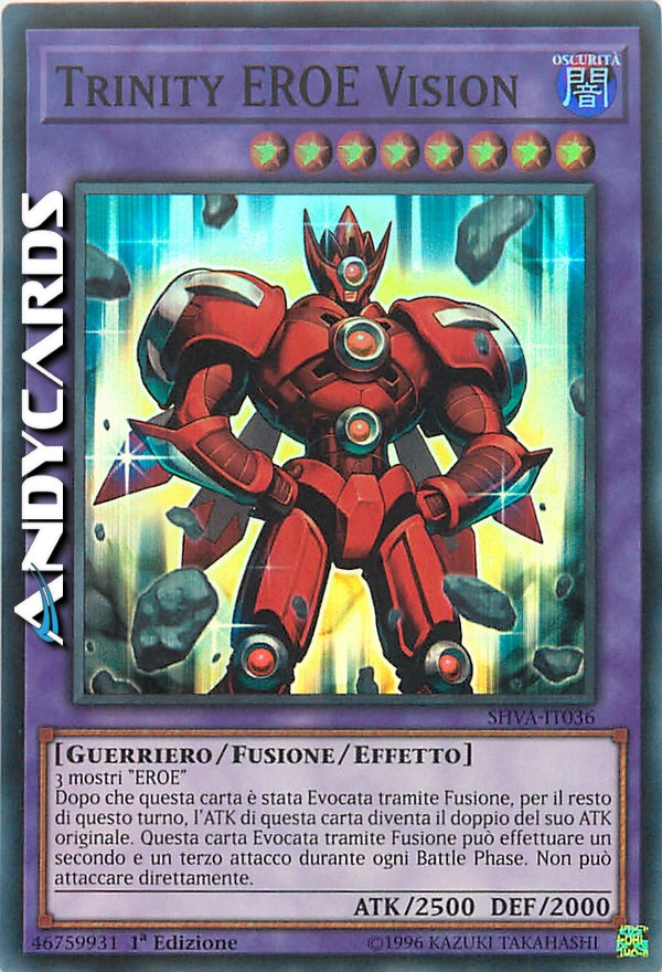 Dopo che questa carta è stata Evocata tramite Fusione, per il resto di questo turno, l'ATK di questa carta diventa il doppio del suo ATK originale. Questa carta Evocata tramite Fusione può effettuare un secondo e un terzo attacco durante ogni Battle Phase. Non può attaccare direttamente.