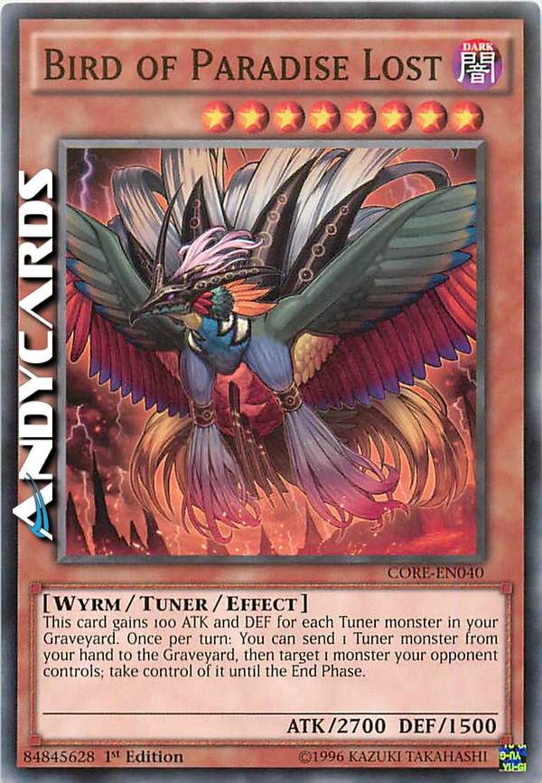 Questa carta guadagna 100 ATK e DEF per ogni mostro Tuner nel tuo Cimitero. Una volta per turno: puoi mandare 1 mostro Tuner dalla tua mano al Cimitero, poi scegliere come bersaglio 1 mostro controllato dal tuo avversario; prendine il controllo fino alla End Phase.