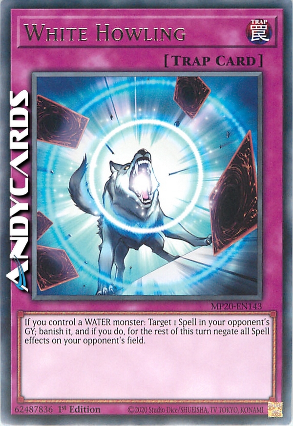 Se controlli un mostro ACQUA: scegli come bersaglio 1 Magia nel Cimitero del tuo avversario; bandiscila e, se lo fai, per il resto di questo turno annulla tutti gli effetti delle Magie sul Terreno del tuo avversario.
