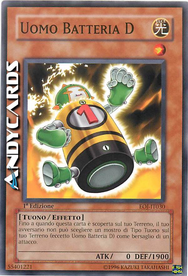 Fino a quando questa carta è scoperta sul tuo Terreno, il tuo avversario non può scegliere un mostro di Tipo Tuono sul tuo Terreno (eccetto Uomo Batteria D) come bersaglio di un attacco.