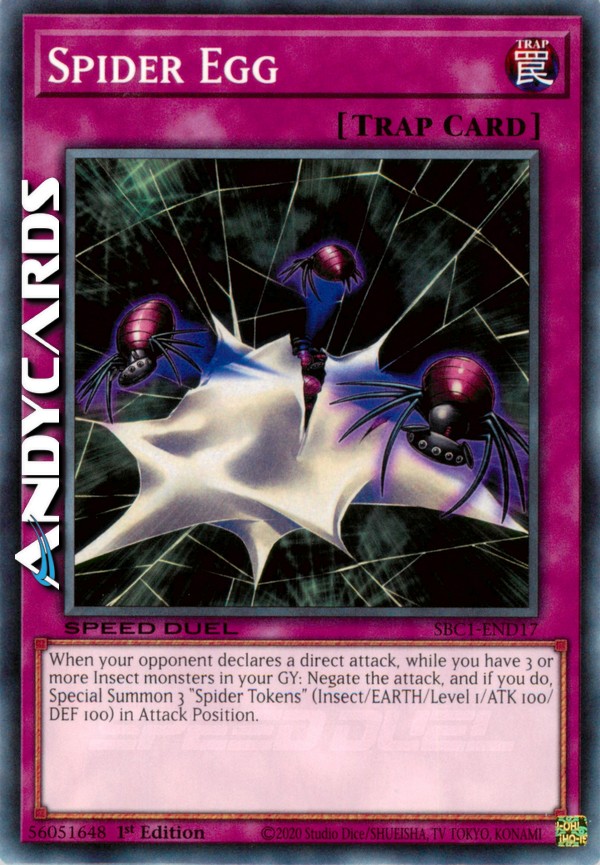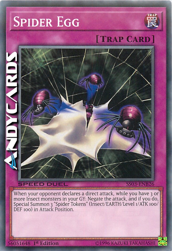 When your opponent declares a direct attack, while you have 3 or more Insect monsters in your GY: Negate the attack, and if you do, Special Summon 3 "Spider Tokens" (Insect/EARTH/Level 1/ATK 100/DEF 100) in Attack Position.