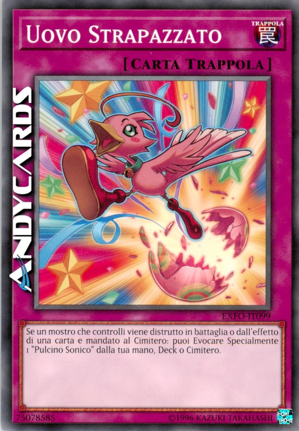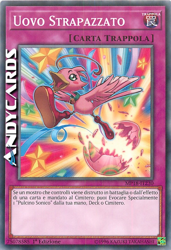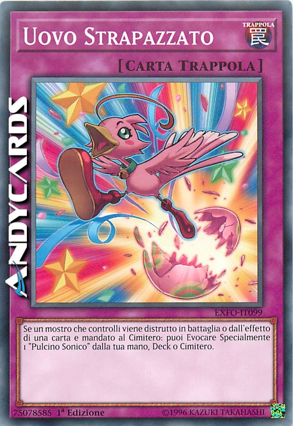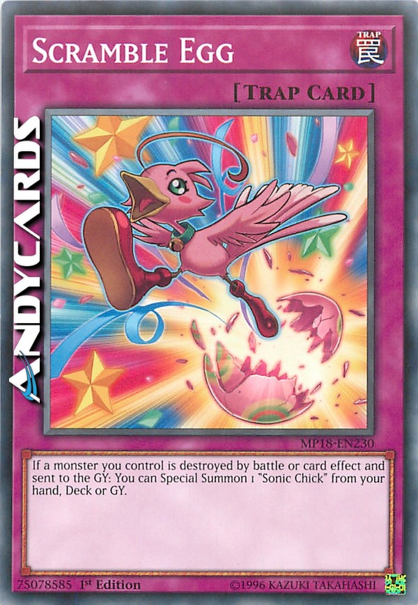 Se un mostro che controlli viene distrutto in battaglia o dall'effetto di una carta e mandato al Cimitero: puoi Evocare Specialmente 1 "Pulcino Sonico" dalla tua mano, Deck o Cimitero.