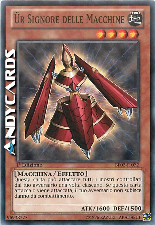 Questa carta può attaccare tutti i mostri controllati dal tuo avversario una volta ognuno. Ogni danno da combattimento che questa carta infligge al tuo avversario diventa 0.