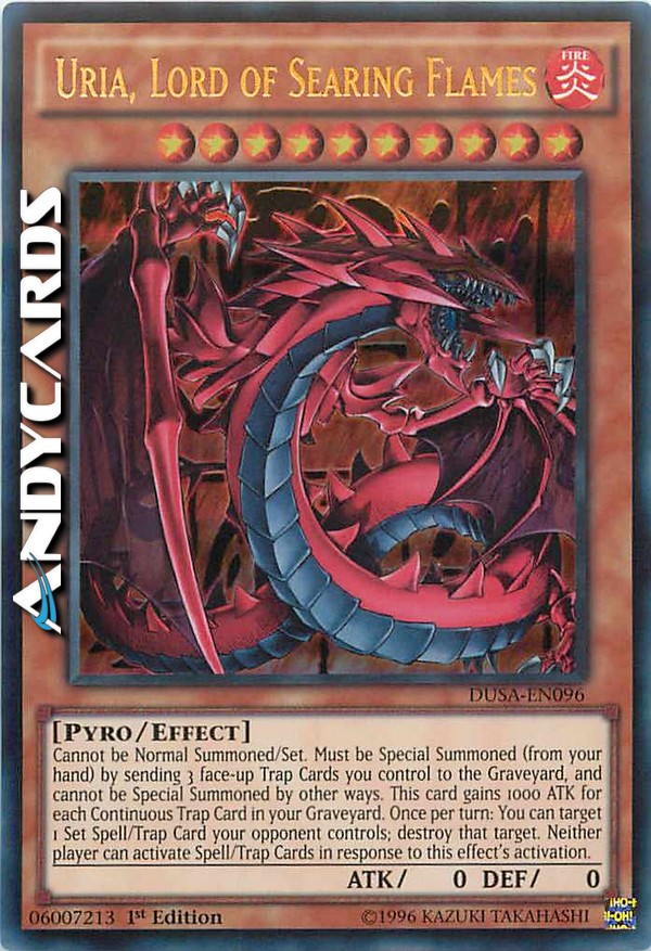 Non può essere Evocato Normalmente/Posizionato. Deve essere Evocato Specialmente (dalla tua mano) mandando 3 Trappole scoperte che controlli al Cimitero. Guadagna 1000 ATK per ogni Trappola Continua nel tuo Cimitero. Una volta per turno: puoi scegliere come bersaglio 1 Magia/Trappola Posizionata controllata dal tuo avversario; distruggi quel bersaglio. Nessun giocatore può attivare Carte Magia/Trappola in risposta all'attivazione di questo effetto.