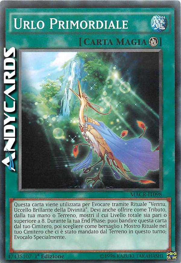 Questa carta viene utilizzata per Evocare tramite Rituale "Vennu, Uccello Brillante della Divinità". Devi anche offrire come Tributo, dalla tua mano o Terreno, mostri il cui Livello totale sia pari o superiore a 8. Durante la tua End Phase: puoi bandire questa carta dal tuo Cimitero, poi scegliere come bersaglio 1 Mostro Rituale nel tuo Cimitero che ci è stato mandato dal Terreno in questo turno; Evocalo Specialmente.