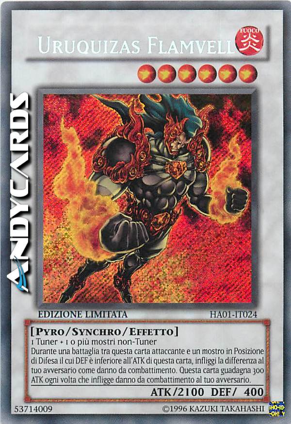 1 tuner+1 o più mostri non-tuner Durante un combattimento tra questa carta attaccante ed un mostro in posizione di difesa il cui DEF è inferiore all'ATK di questa carta,infliggi la differenza al tuo avversario come danno da combattimento. Questa carta guadagna 300 ATK ogni volta che infligge danno da combattimento al tuo avversario.