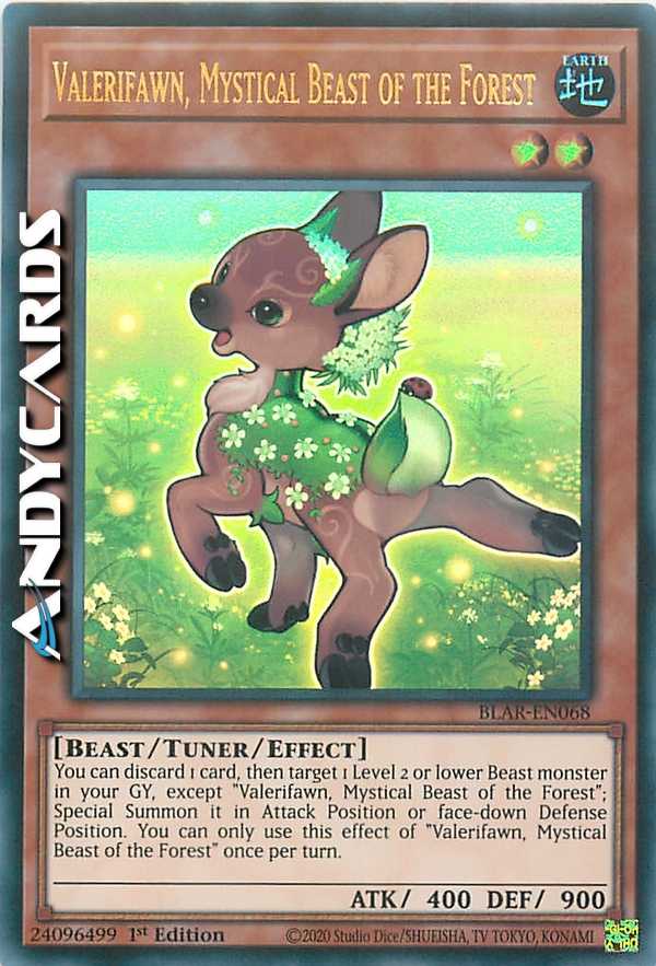 You can discard 1 card, then target 1 Level 2 or lower Beast monster in your Graveyard, except "Valerifawn, Mystical Beast of the Forest"; Special Summon it in Attack Position or face-down Defense Position. You can only use this effect of "Valerifawn, Mystical Beast of the Forest" once per turn.