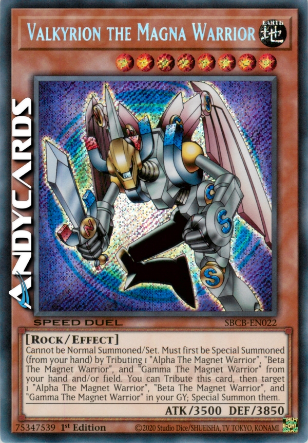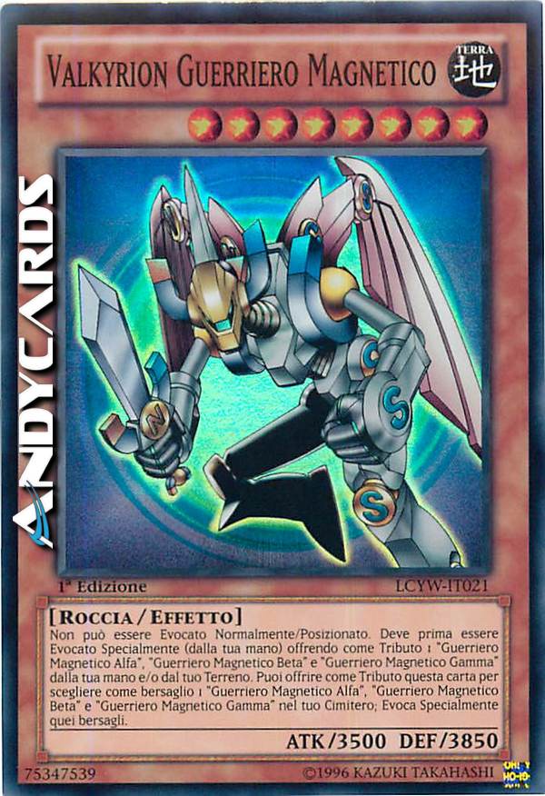 Questa carta può essere evocata solamente tramite Evocazione Speciale offrendo come Tributo "Guerriero Magnetico Alpha", "Guerriero Magnetico Beta" e "Guerriero Magnetico Gamma" dalla tua mano o sul Terreno. Inoltre, se "Guerriero Magnetico Alpha", "Guerriero Magnetico Beta" e "Guerriero Magnetico Gamma" sono nel tuo Cimitero, puoi offrire questa carta sul Terreno come Tributo per effettuare l'evocazione Speciale di queste 3 carte sul tuo Terreno.
