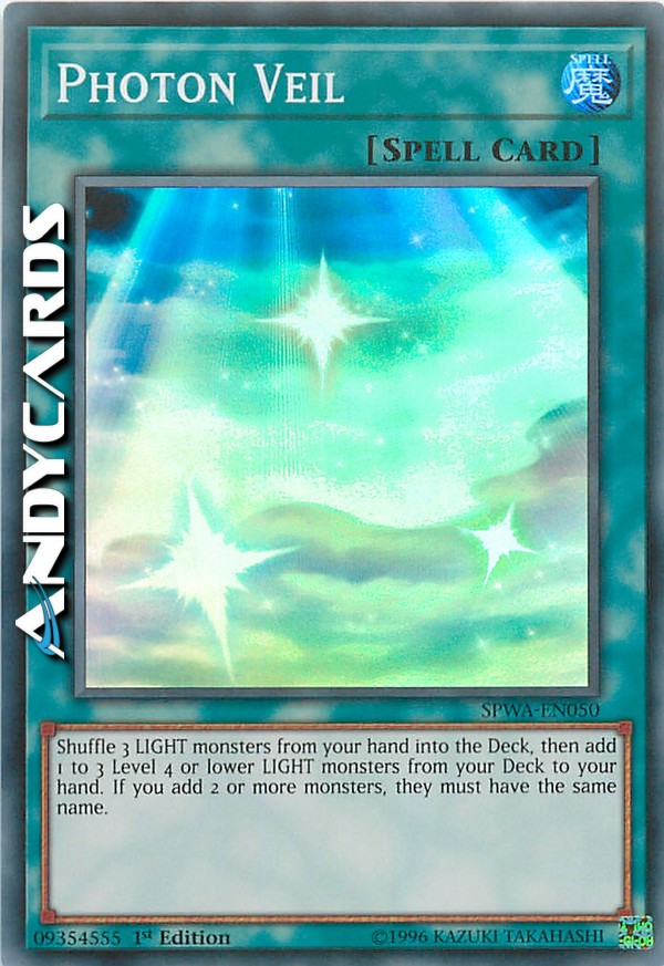 Mischia 3 mostri LUCE dalla tua mano nel Deck, poi aggiungi da 1 a 3 mostri LUCE di Livello 4 o inferiore dal tuo Deck alla tua mano. Se aggiungi 2 o più mostri, essi devono avere lo stesso nome.