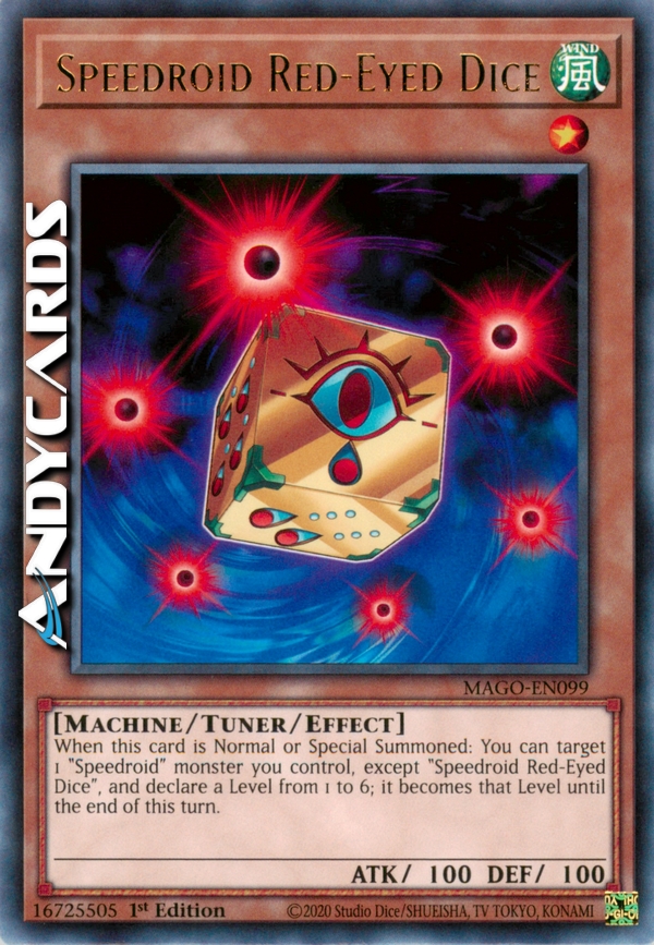 When this card is Normal or Special Summoned: You can target 1 "Speedroid" monster you control, except "Speedroid Red-Eyed Dice", and declare a Level from 1 to 6; it becomes that Level until the end of this turn.