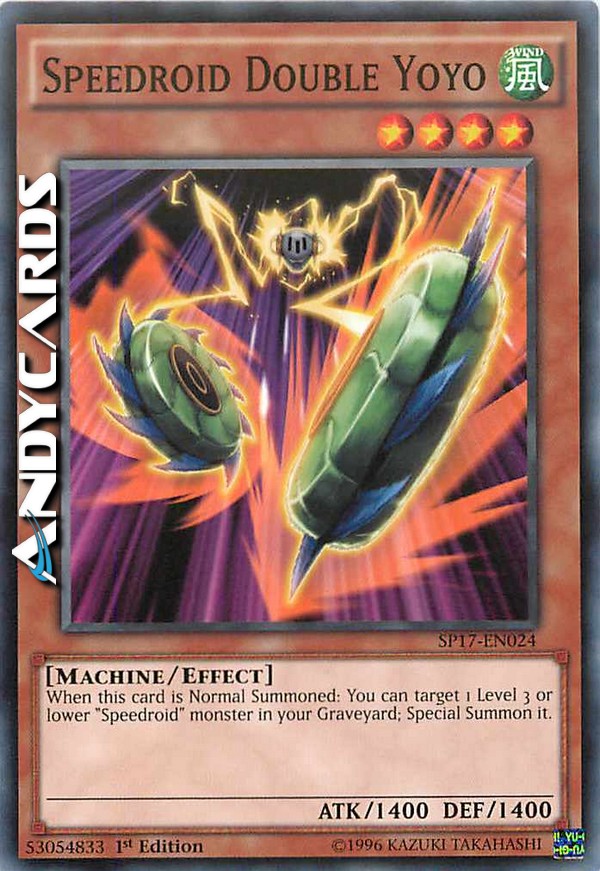 When this card is Normal Summoned: You can target 1 Level 3 or lower "Speedroid" monster in your Graveyard; Special Summon it.