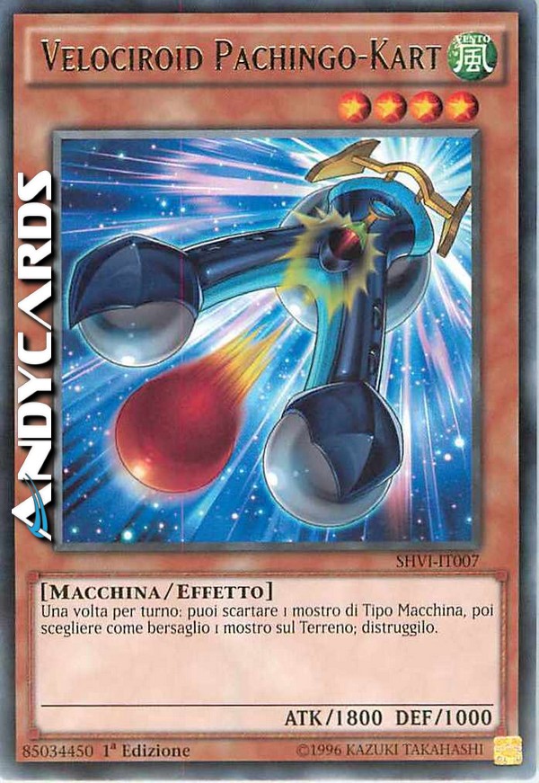 Una volta per turno: puoi scartare 1 mostro di Tipo Macchina, poi scegliere come bersaglio 1 mostro sul Terreno; distruggilo.