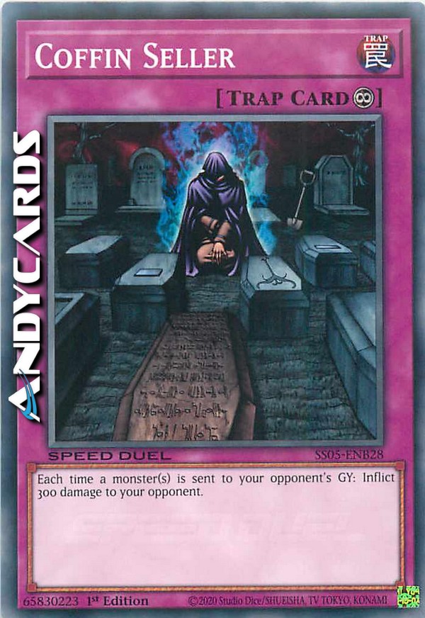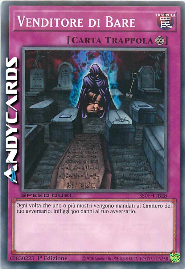 Ogni volta che le Carte Mostro del tuo avversario vengono mandate al Cimitero, infliggi 300 punti di danno ai Life Points del tuo avversario.