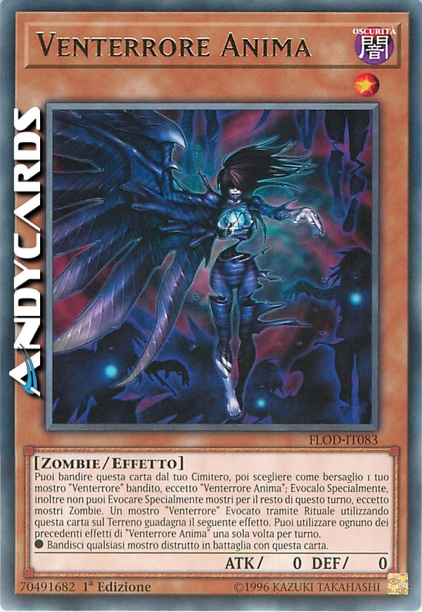 Puoi bandire questa carta dal tuo Cimitero, poi scegliere come bersaglio 1 tuo mostro "Venterrore" bandito, eccetto "Venterrore Anima"; Evocalo Specialmente, inoltre non puoi Evocare Specialmente mostri per il resto di questo turno, eccetto mostri Zombie. Un mostro "Venterrore" Evocato tramite Rituale utilizzando questa carta sul Terreno guadagna il seguente effetto. Puoi utilizzare ognuno dei precedenti effetti di "Venterrore Anima" una sola volta per turno.