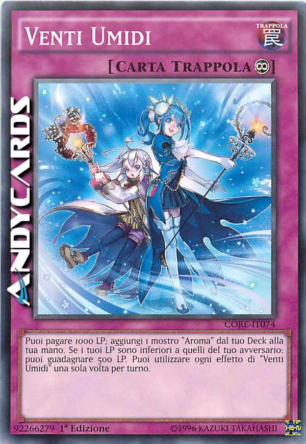 Puoi pagare 1000 LP; aggiungi 1 mostro "Aroma" dal tuo Deck alla tua mano. Se i tuoi LP sono inferiori a quelli del tuo avversario: puoi guadagnare 500 LP. Puoi utilizzare ogni effetto di "Venti Umidi" una sola volta per turno.