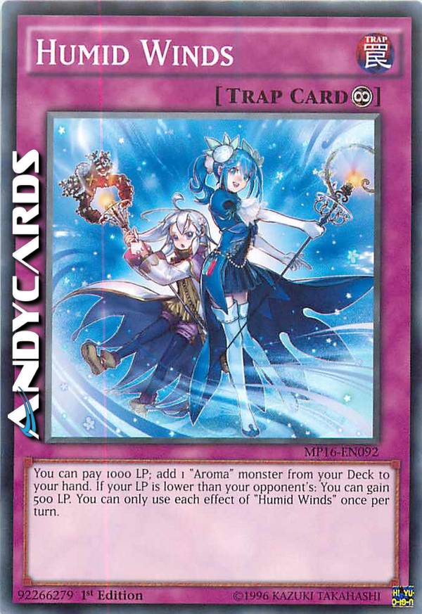 You can pay 1000 LP; add 1 "Aroma" monster from your Deck to your hand. If your LP are lower than your opponent's: You can gain 500 LP. You can only use each effect of "Humid Winds" once per turn.