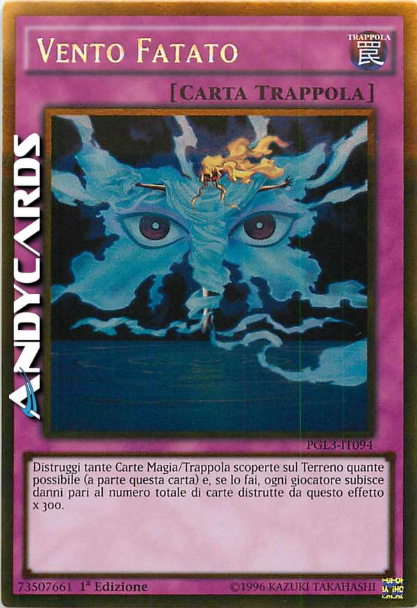 Distruggi tutte le altre carte Carte Magia e Trappola scoperte sul Terreno. Entrambi i giocatori subiscono danni pari al numero totale di carte distrutte da questo effetto x 300.