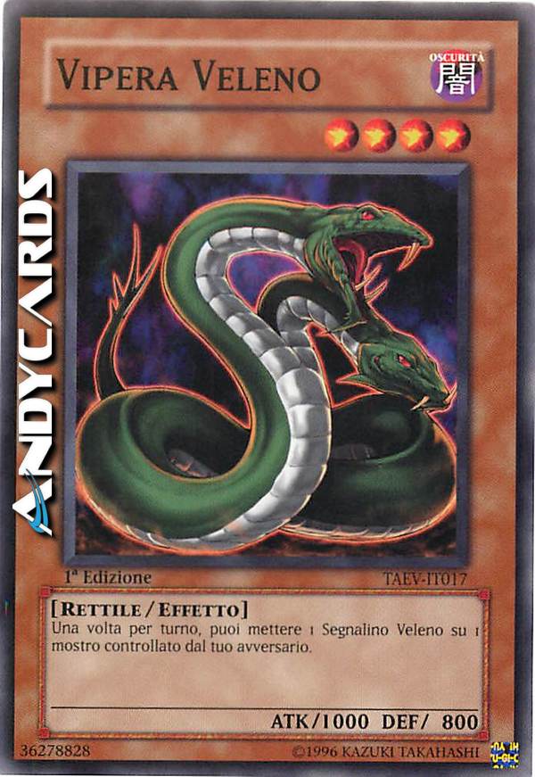 Una volta per turno puoi mettere 1 Segnalino Veleno su 1 mostro controllato dal tuo avversario.