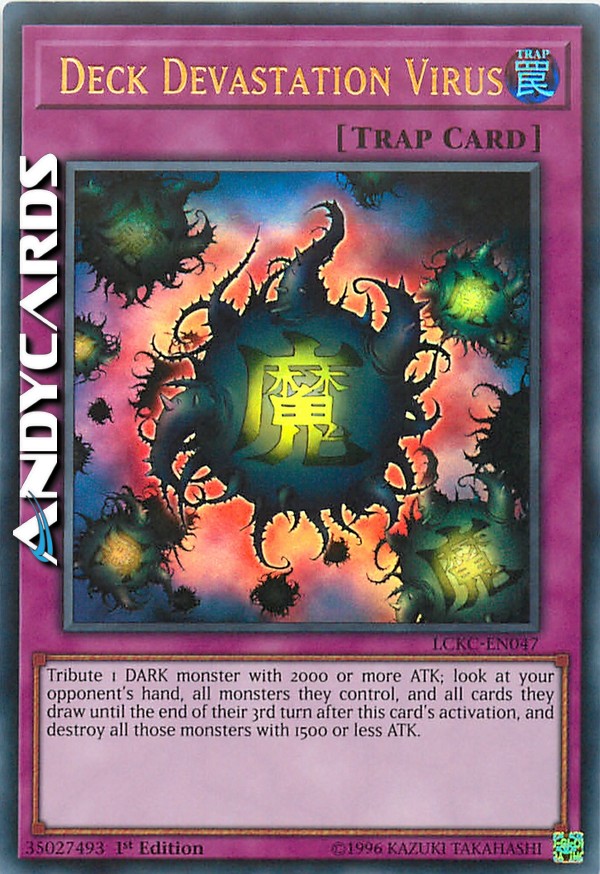 Offri come Tributo 1 mostro OSCURITÀ con ATK 2000 o superiore; guarda la mano del tuo avversario, tutti i mostri che controlla, e tutte le carte che pesca fino alla fine del suo 3º turno dopo che questa carta si è risolta, e distruggi tutti quei mostri con ATK 1500 o inferiore.