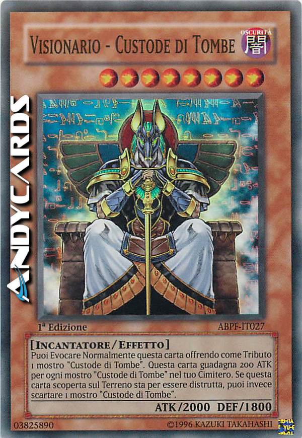 Puoi Evocare Normalmente questa carta offrendo come Tributo 1 mostro "Custode di Tombe". Questa carta guadagna 200 ATK per ogni mostro "Custode di Tombe" nel tuo Cimitero. Se questa carta scoperta sul Terreno sta per essere distrutta, puoi invece scartare 1 mostro "Custode di Tombe".