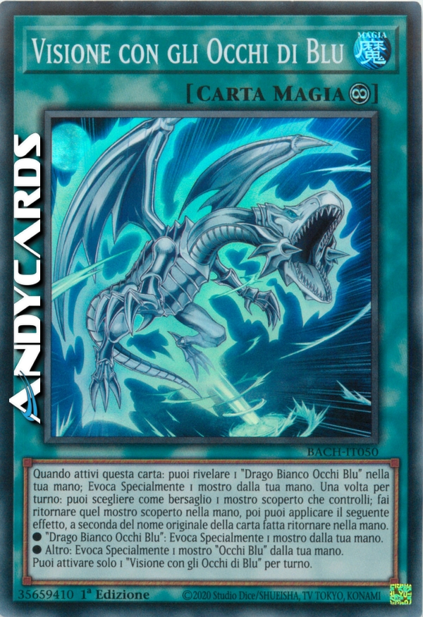 Quando attivi questa carta: puoi rivelare 1 "Drago Bianco Occhi Blu" nella tua mano; Evoca Specialmente 1 mostro dalla tua mano. Una volta per turno: puoi scegliere come bersaglio 1 mostro scoperto che controlli; fai ritornare quel mostro scoperto nella mano, poi puoi applicare il seguente effetto, a seconda del nome originale della carta fatta ritornare nella mano.
