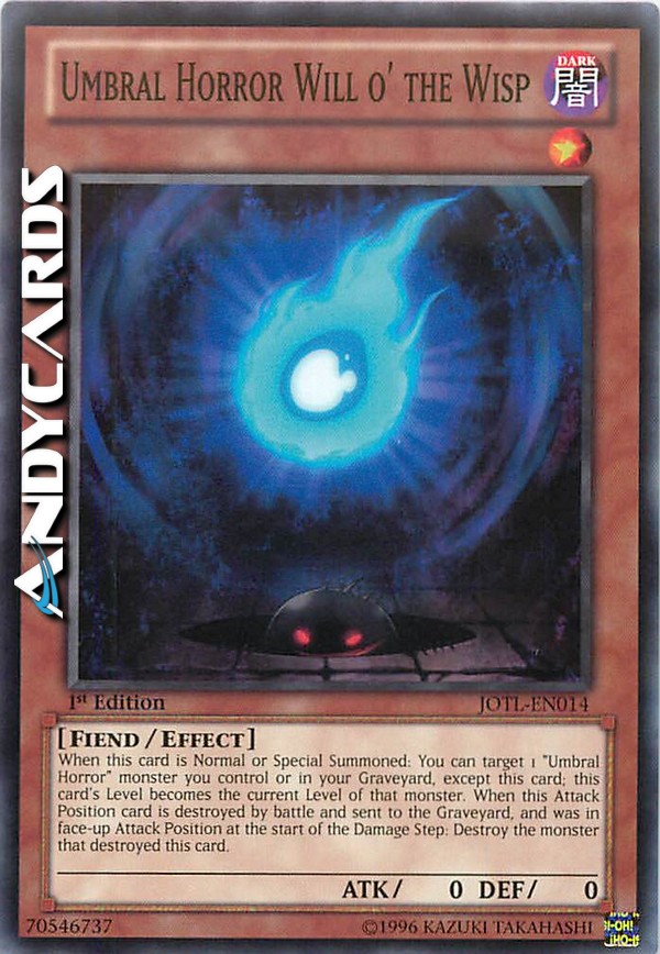 Quando questa carta viene Evocata Normalmente o Specialmente: puoi scegliere come bersaglio 1 mostro "Orrore Umbral" che controlli o nel tuo Cimitero, eccetto questa carta; il Livello di questa carta diventa il Livello attuale di quel mostro. Quando questa carta in Posizione di Attacco viene distrutta in battaglia e mandata al Cimitero, ed era scoperta in Posizione di Attacco all'inizio del Damage Step: distruggi il mostro che ha distrutto questa carta.
