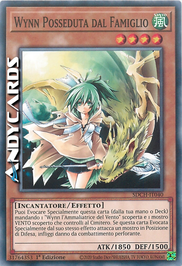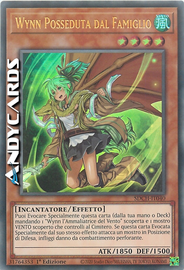Puoi Evocare Specialmente questa carta (dalla tua mano o Deck) mandando 1 "Wynn l'Ammaliatrice del Vento" scoperta e 1 mostro VENTO scoperto che controlli al Cimitero. Se questa carta Evocata Specialmente dal suo effetto attacca un mostro in Posizione di Difesa, infliggi danno da combattimento perforante al tuo avversario.