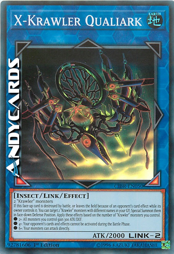 2 mostri "Krawler" - Se questa carta scoperta viene distrutta in battaglia, o lascia il Terreno a causa dell'effetto di una carta dell'avversario mentre è controllata dal suo proprietario: puoi scegliere come bersaglio 2 mostri "Krawler" con nomi diversi nel tuo Cimitero; Evocali Specialmente coperti in Posizione di Difesa. Applica questi effetti a seconda del numero di mostri "Krawler" che controlli. - 2+: Tutti i mostri che controlli guadagnano 300 ATK/DEF. - 4+: Le carte e gli effetti del tuo avversario non possono essere attivati durante la Battle Phase. - 6+: I tuoi mostri possono attaccare direttamente.