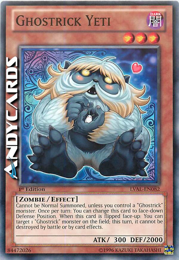 Cannot be Normal Summoned, unless you control a "Ghostrick" monster. Once per turn: You can change this card to face-down Defense Position. When this card is flipped face-up: You can target 1 "Ghostrick" monster on the field; this turn, it cannot be destroyed by battle or card effects.