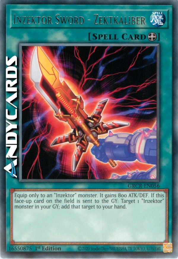 Equipaggia solo ad un mostro "Inzektor". Esso guadagna 800 ATK e DEF. Quando questa carta scoperta sul Terreno viene mandata al Cimitero: scegli come bersaglio 1 mostro "Inzektor" nel tuo Cimitero; aggiungi quel bersaglio alla tua mano.