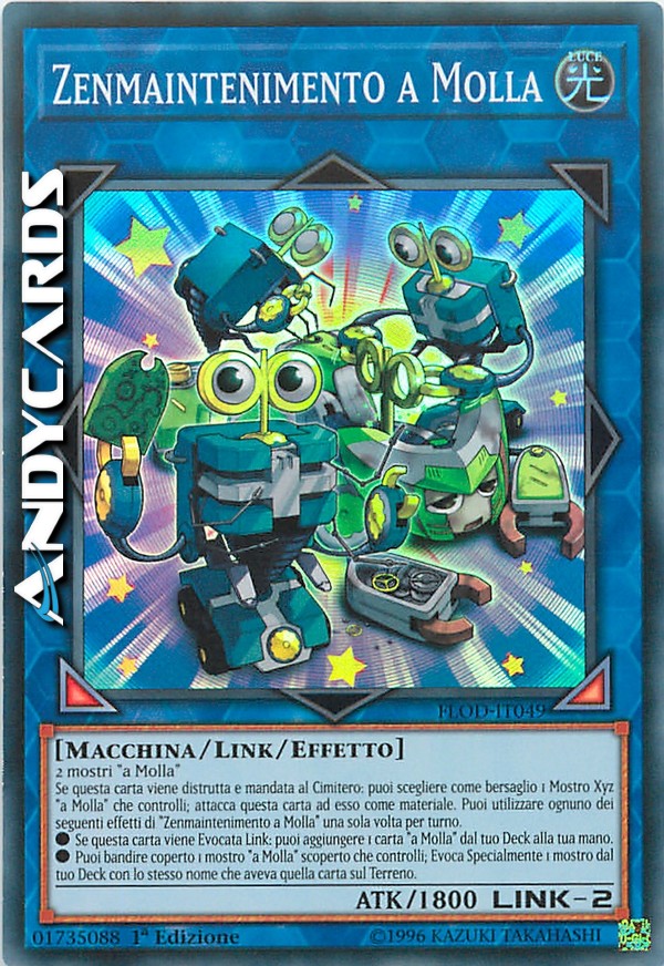 Se questa carta viene distrutta e mandata al Cimitero: puoi scegliere come bersaglio 1 Mostro Xyz "a Molla" che controlli; attacca questa carta ad esso come materiale. Puoi utilizzare ognuno dei seguenti effetti di "Zenmaintenimento a Molla" una sola volta per turno.